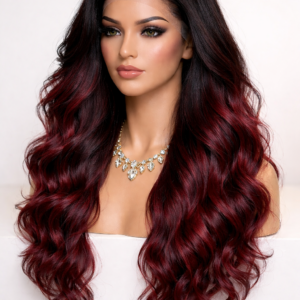 Step into bold elegance with the ALIYA Burgundy Fashion Frontal Wig from PrincessHiala. Designed in a rich, luxurious burgundy shade,